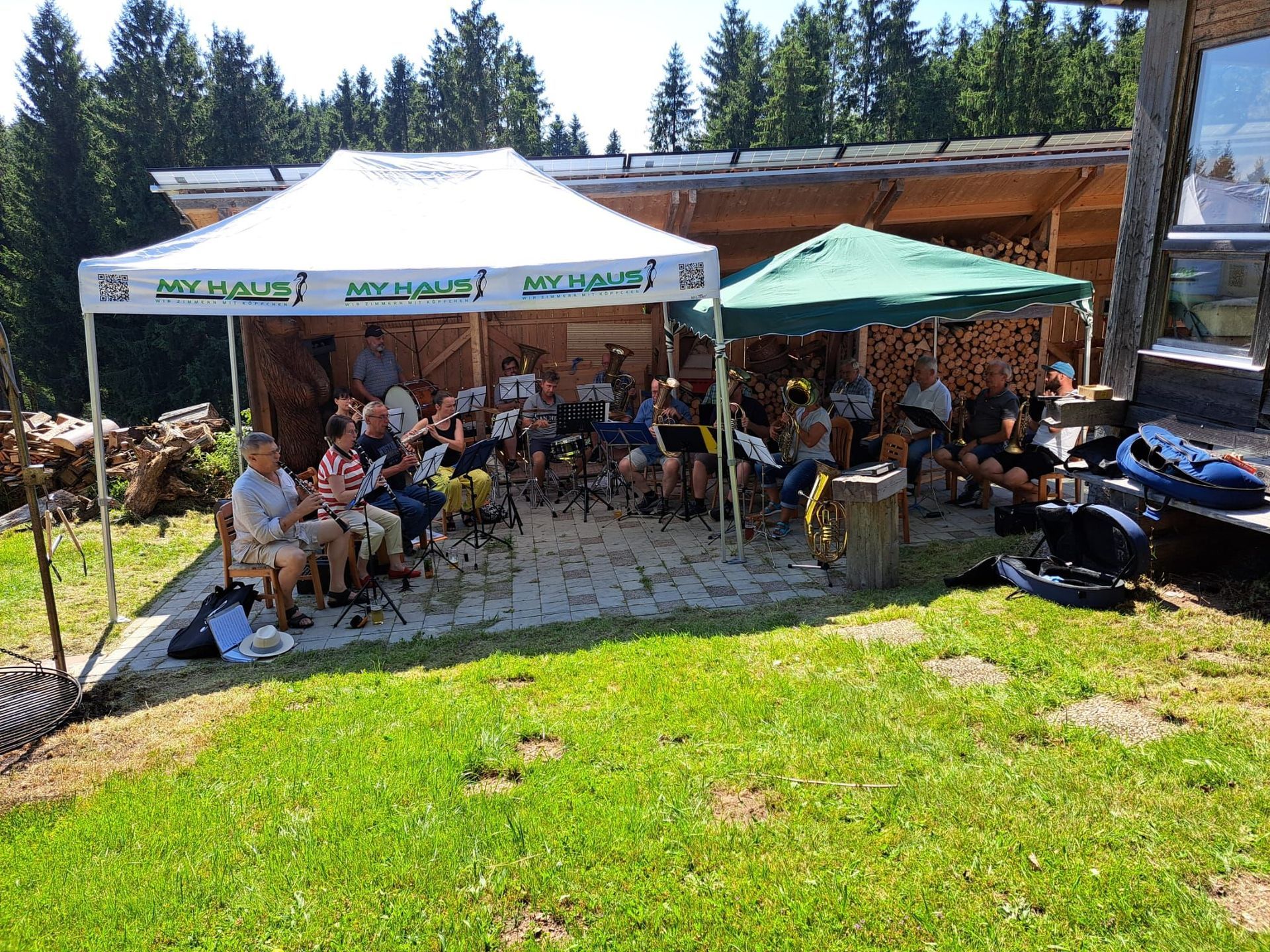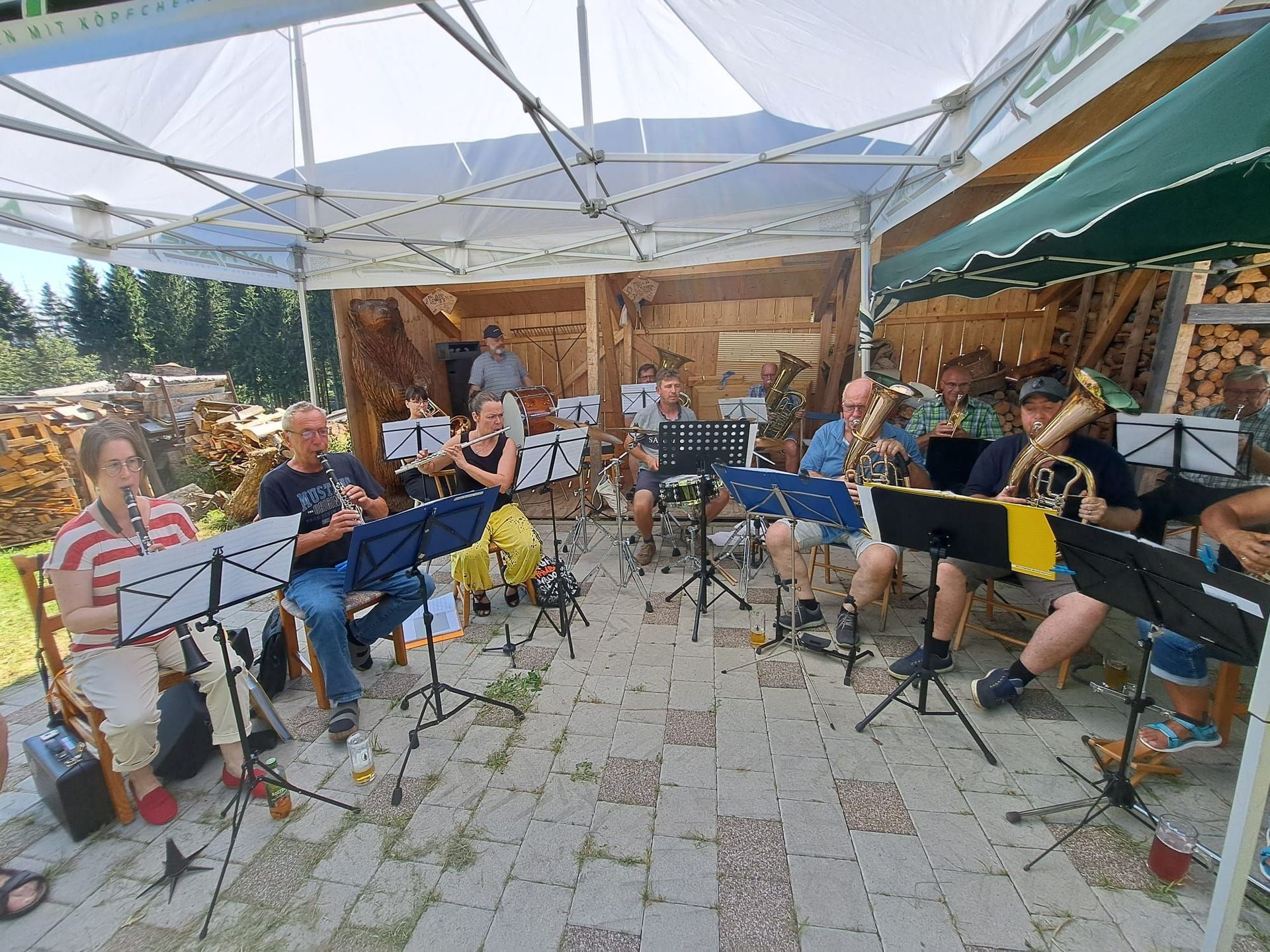 Wir können auch feiern mit den 3 B,--- Bier, Bratwurst und Blasmusik. Am Samstag, 9.8. waren wir bei herrlichem Wetter zu Gast bei unserem Trompeter Thomas und hatten einen schönen Tag mit lockeren Gesprächen und stimmungsvoller Blasmusik, ein rundum schöner Nachmittag, bei dem auch unsere Partnerinnen ihr Schwätzchen halten konnten. Nach einer lockeren Probe gab es gegrillte Köstlickeiten mit Salat und es wurde Durst gelöscht. Danke Thomas für die Gastfreundschaft.